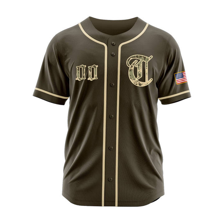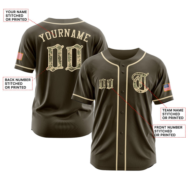 Custom Olive Camo-City Cream Classic Style Authentic American Flag Fashion Salute To Service Sports Baseball Jersey