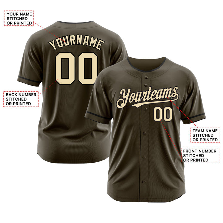 Custom Olive Cream-Black Classic Style Authentic Salute To Service Sports Baseball Jersey