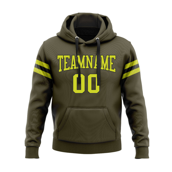 Custom Olive Neon Yellow-Black Personalized Sports Team Embroidered Pullover Hoodie