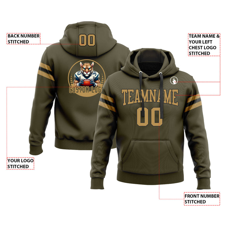 Custom Olive Old Gold-Black Personalized Sports Team Embroidered Pullover Hoodie