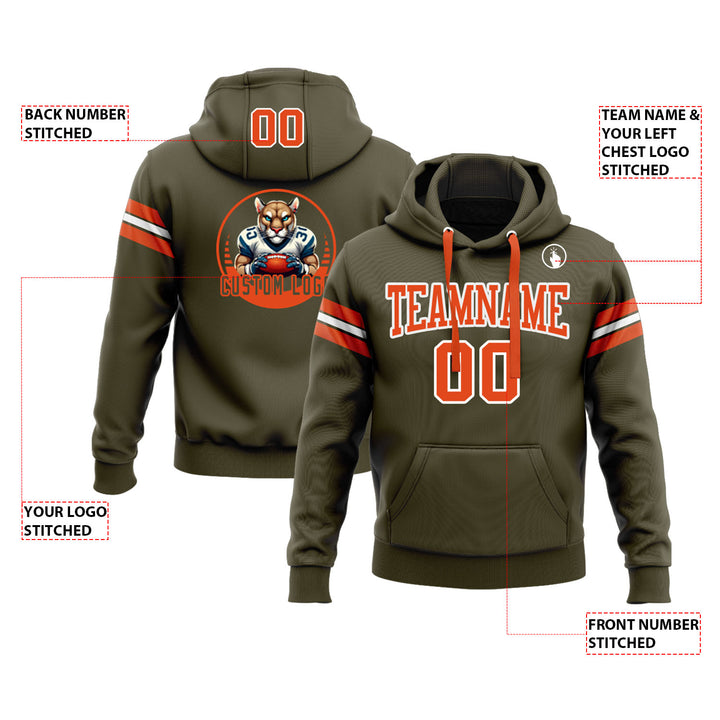 Custom Olive Orange-White Personalized Sports Team Embroidered Pullover Hoodie