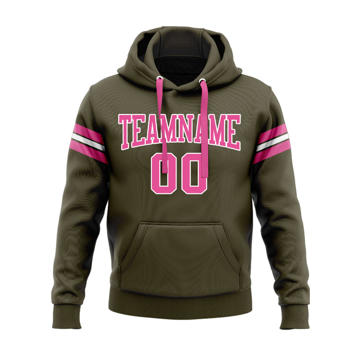 Custom Olive Pink-White Personalized Sports Team Embroidered Pullover Hoodie