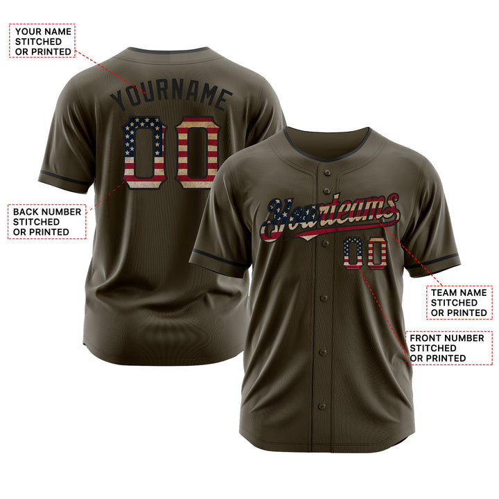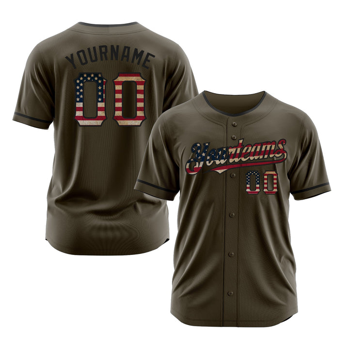 Custom Olive Vintage USA Flag-Black Classic Style Authentic Salute To Service Sports Baseball Jersey