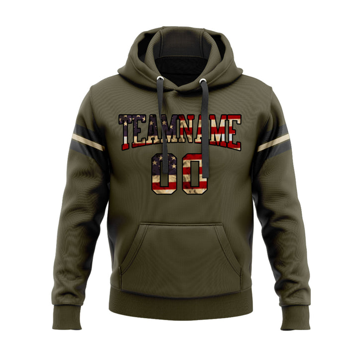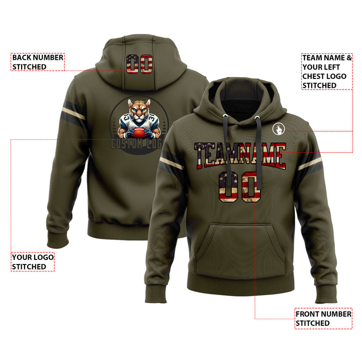 Custom Olive Vintage USA Flag Black-Cream Personalized Sports Team Embroidered Pullover Hoodie