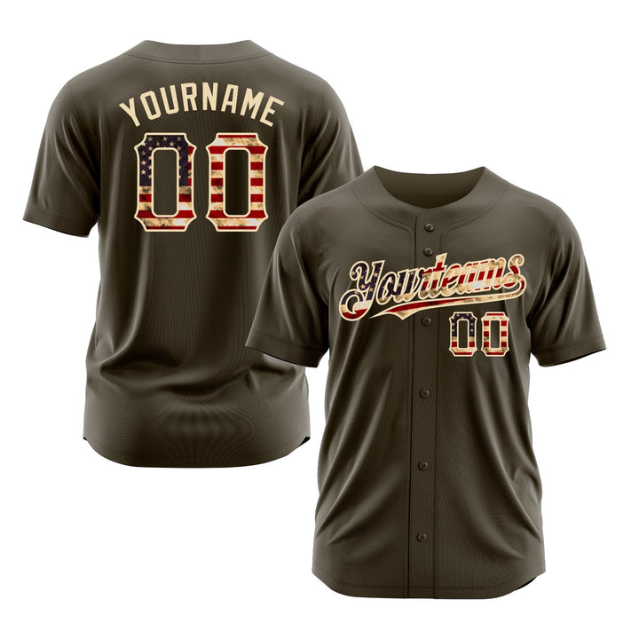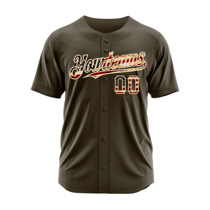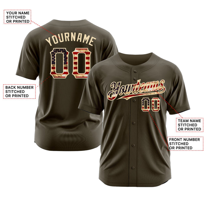 Custom Olive Vintage USA Flag-Cream Classic Style Authentic Salute To Service Sports Baseball Jersey