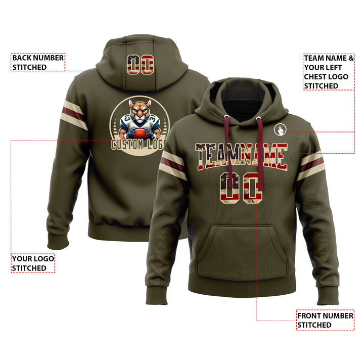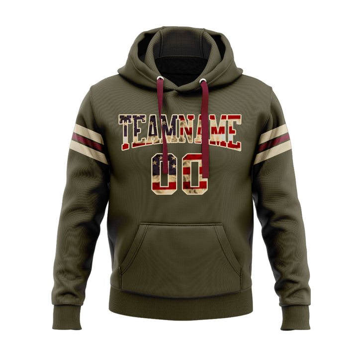 Custom Olive Vintage USA Flag Cream-Crimson Personalized Sports Team Embroidered Pullover Hoodie