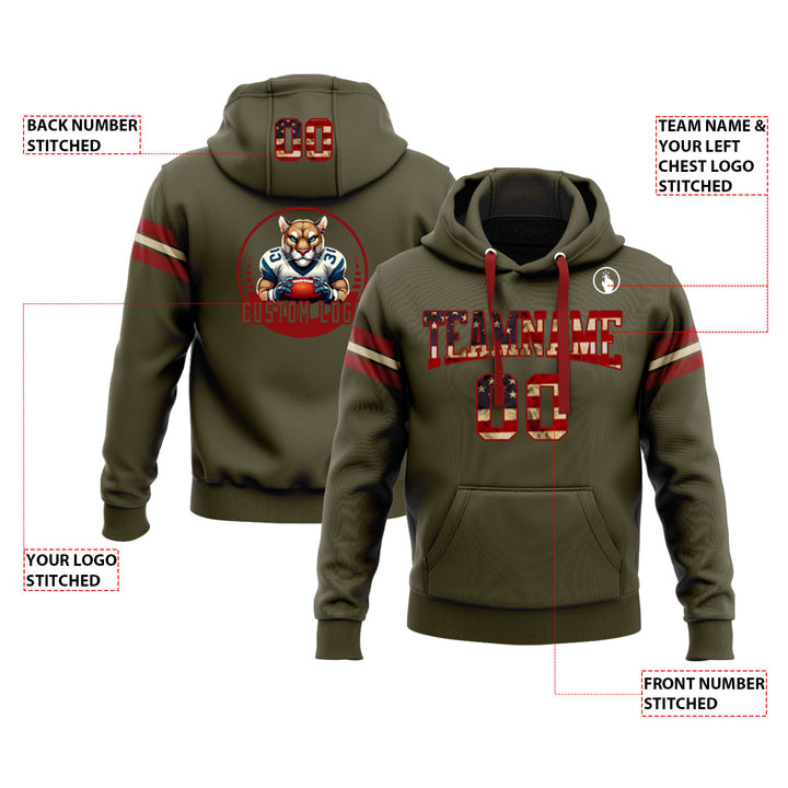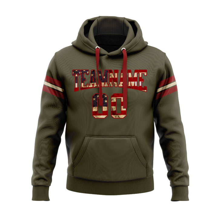 Custom Olive Vintage USA Flag Red-Cream Personalized Sports Team Embroidered Pullover Hoodie