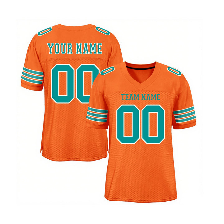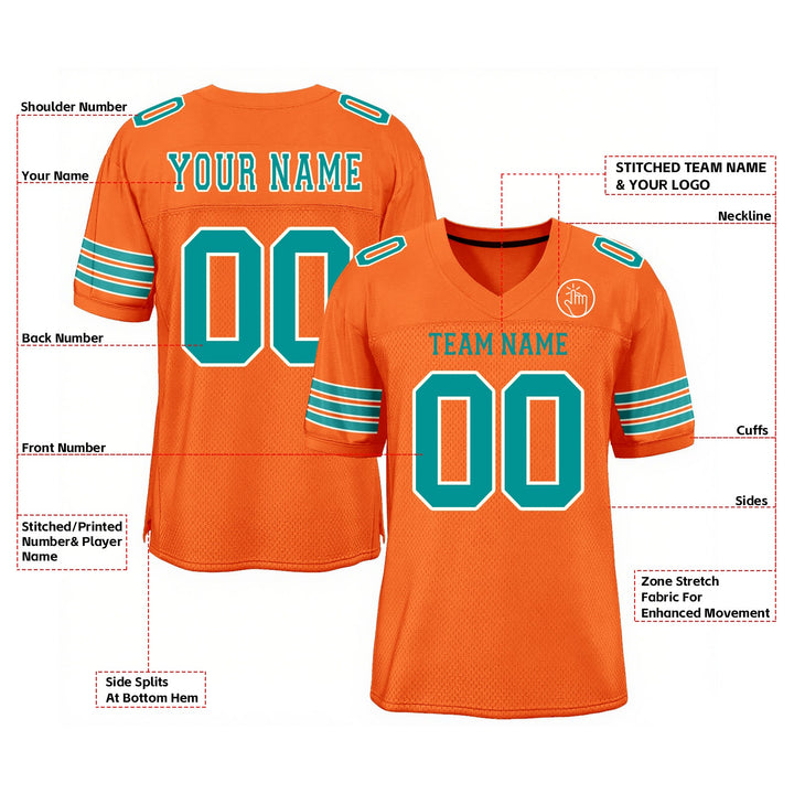 Custom Orange Aqua-White Mesh Classic Style Authentic Sports Football Jersey