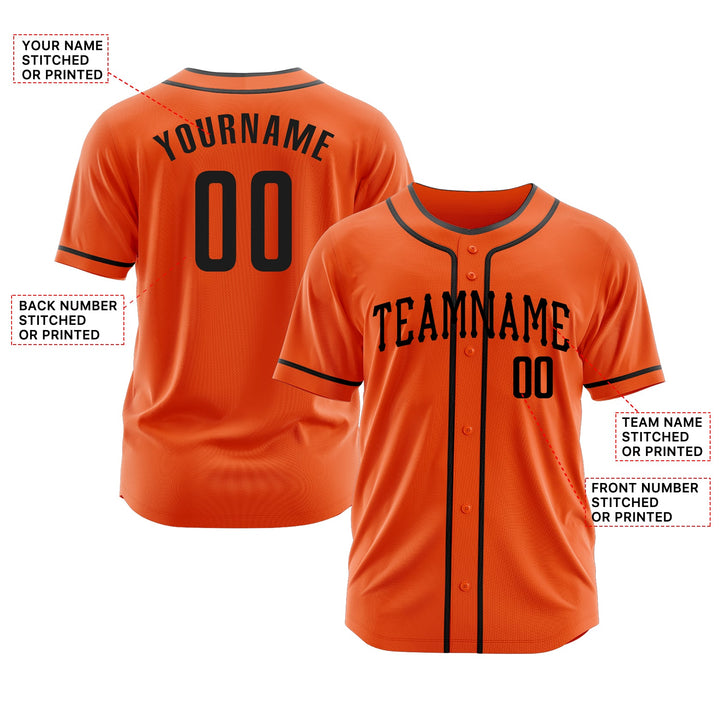 Custom Orange Black Classic Style Authentic Sports Baseball Jersey