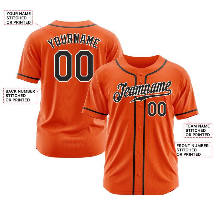 Custom Orange Black-White Classic Style Authentic Sports Baseball Jersey