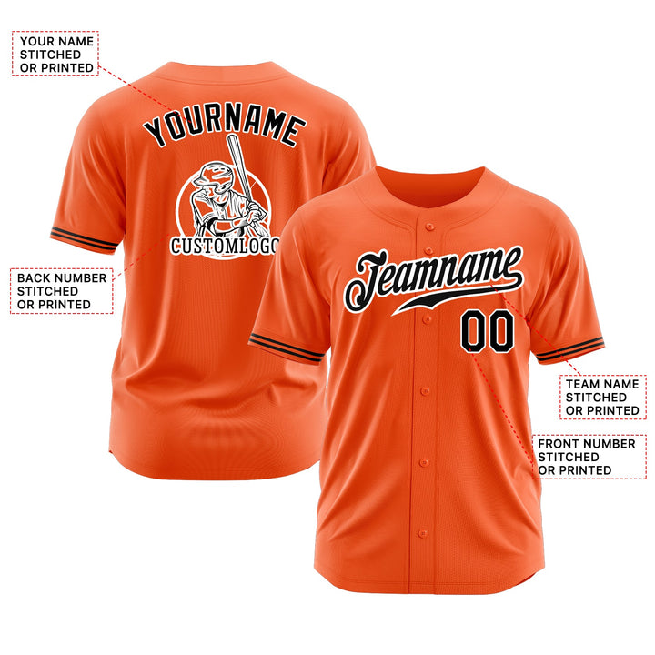 Custom Orange Black-White Classic Style Authentic Sports Baseball Jersey