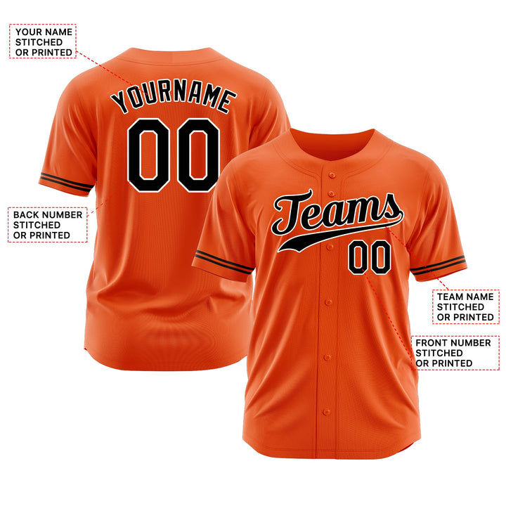 Custom Orange Black-White Classic Style Authentic Sports Baseball Jersey