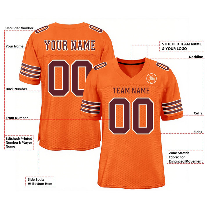Custom Orange Burgundy-White Mesh Classic Style Authentic Sports Football Jersey