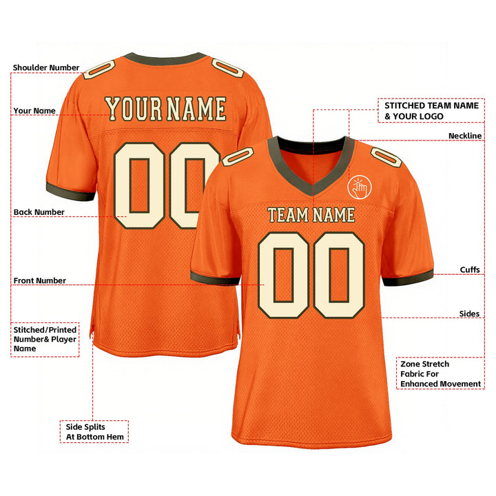 Custom Orange Cream-Olive Mesh Classic Style Authentic Sports Football Jersey