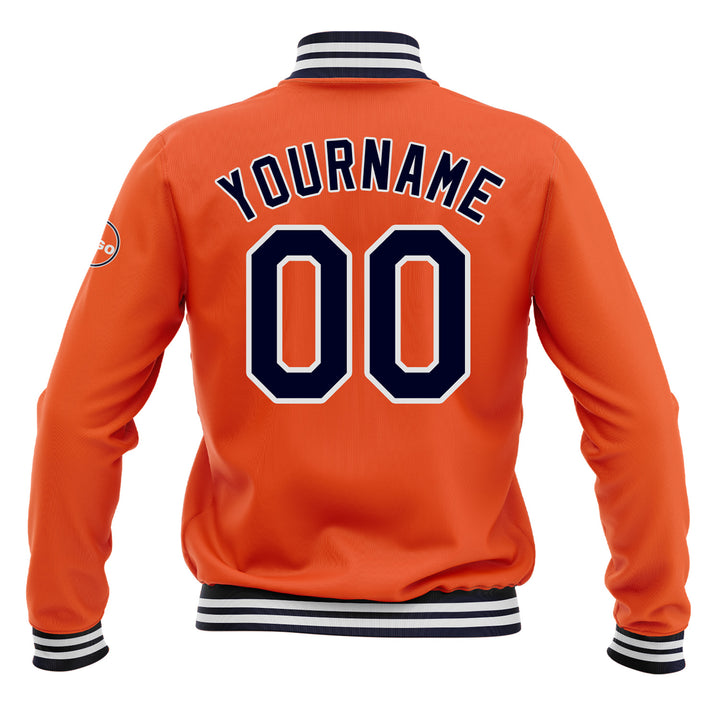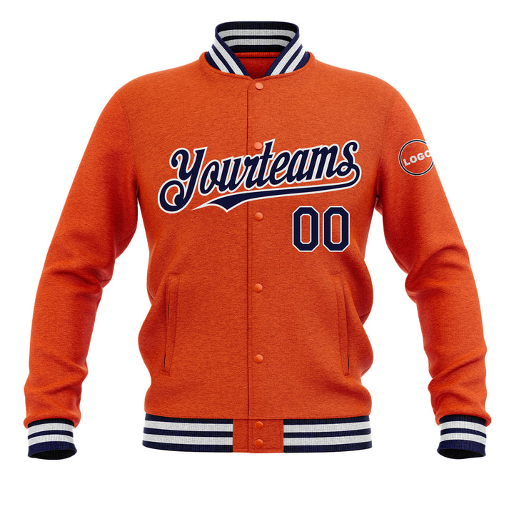 Custom Orange Navy-White Classic Style Bomber Varsity Letterman Embroidered Jacket