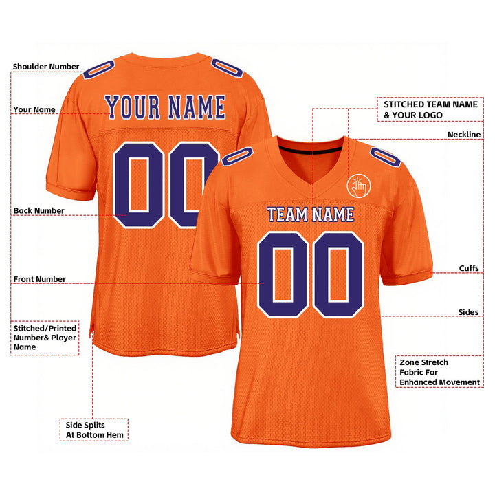 Custom Orange Purple-White Mesh Classic Style Authentic Sports Football Jersey
