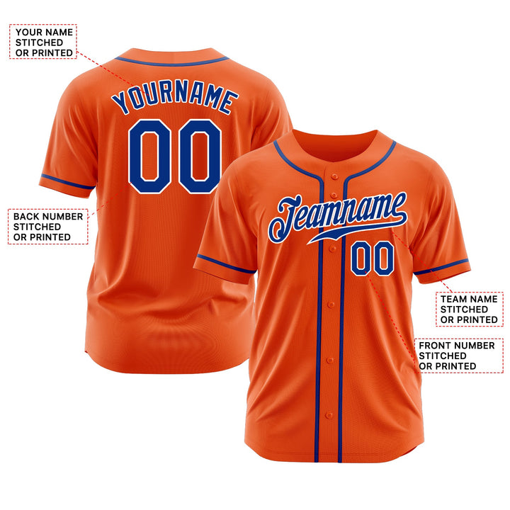 Custom Orange Royal-White Classic Style Authentic Sports Baseball Jersey