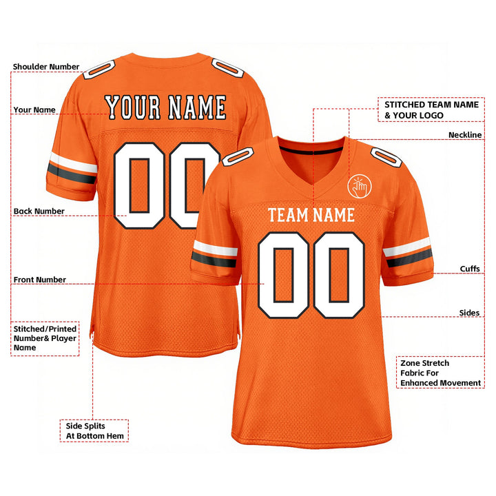 Custom Orange White-Black Mesh Classic Style Authentic Sports Football Jersey