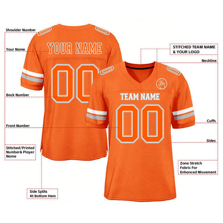 Custom Orange White-Gray Mesh Classic Style Authentic Sports Football Jersey