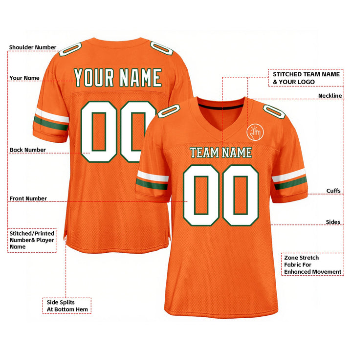 Custom Orange White-Green Mesh Classic Style Authentic Sports Football Jersey