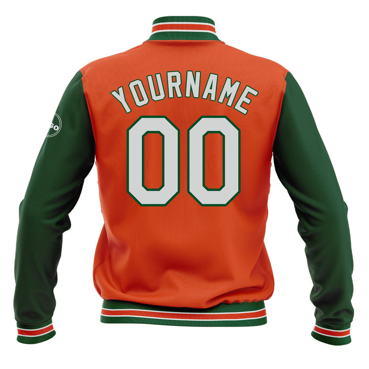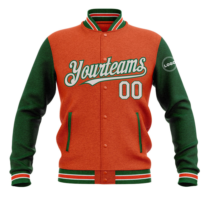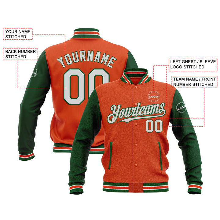 Custom Orange White-Kelly Green Classic Style Two Tone Bomber Varsity Letterman Embroidered Jacket