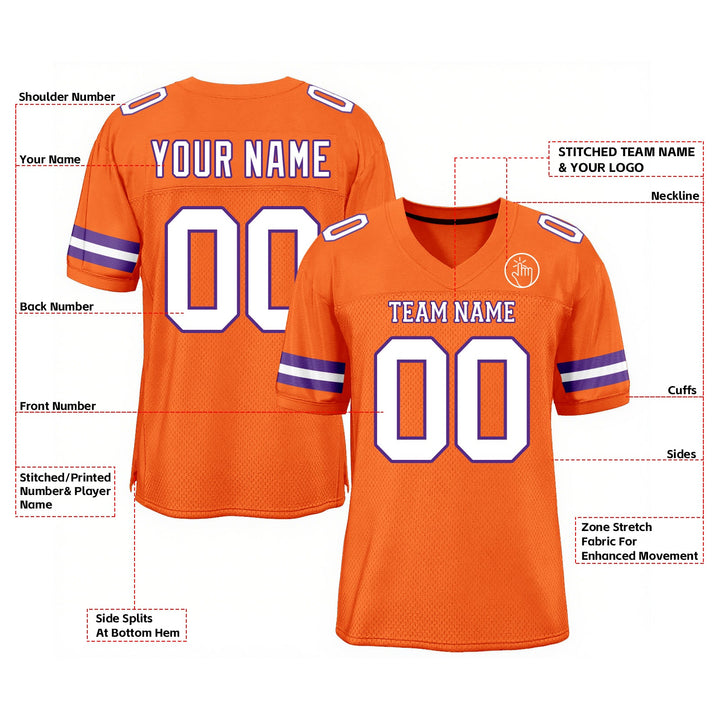 Custom Orange White-Purple Mesh Classic Style Authentic Sports Football Jersey
