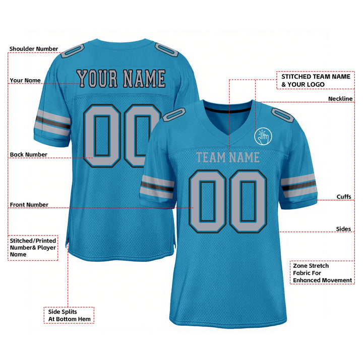 Custom Panther Blue Light Gray-Black Mesh Classic Style Authentic Sports Football Jersey