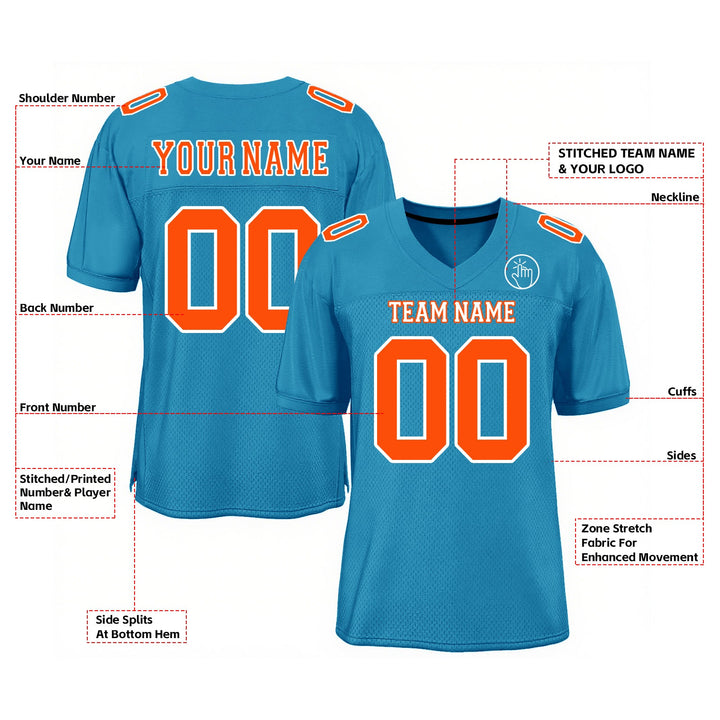 Custom Panther Blue Orange-White Mesh Classic Style Authentic Sports Football Jersey