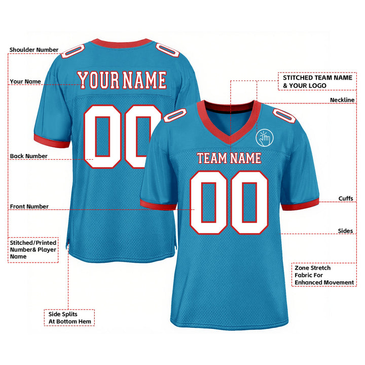 Custom Panther Blue White-Red Mesh Classic Style Authentic Sports Football Jersey