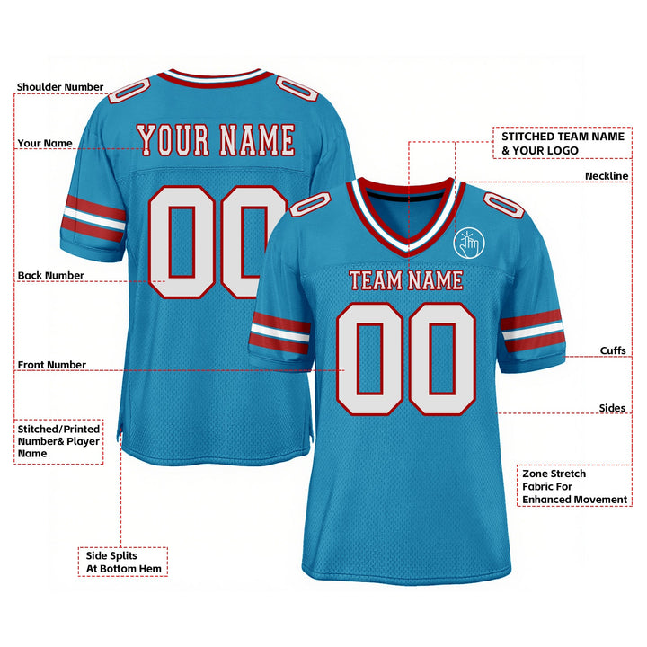 Custom Panther Blue White-Red Mesh Mesh Classic Style Authentic Sports Football Jersey