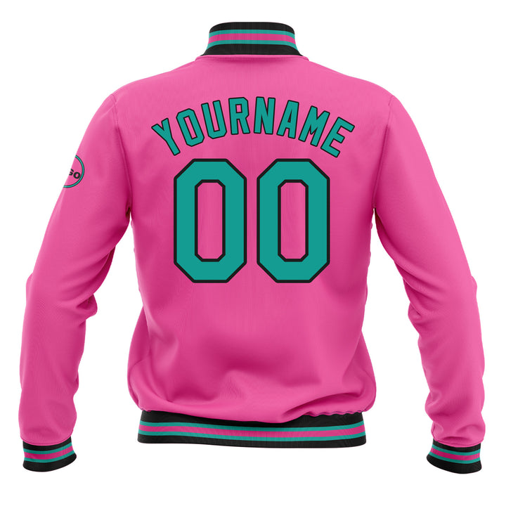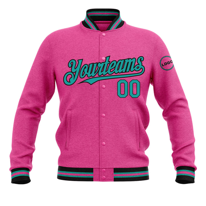Custom Pink Aqua-Black Classic Style Bomber Varsity Letterman Embroidered Jacket
