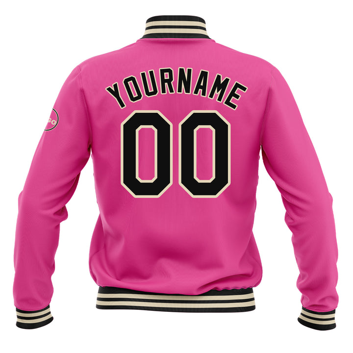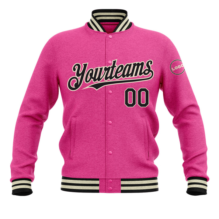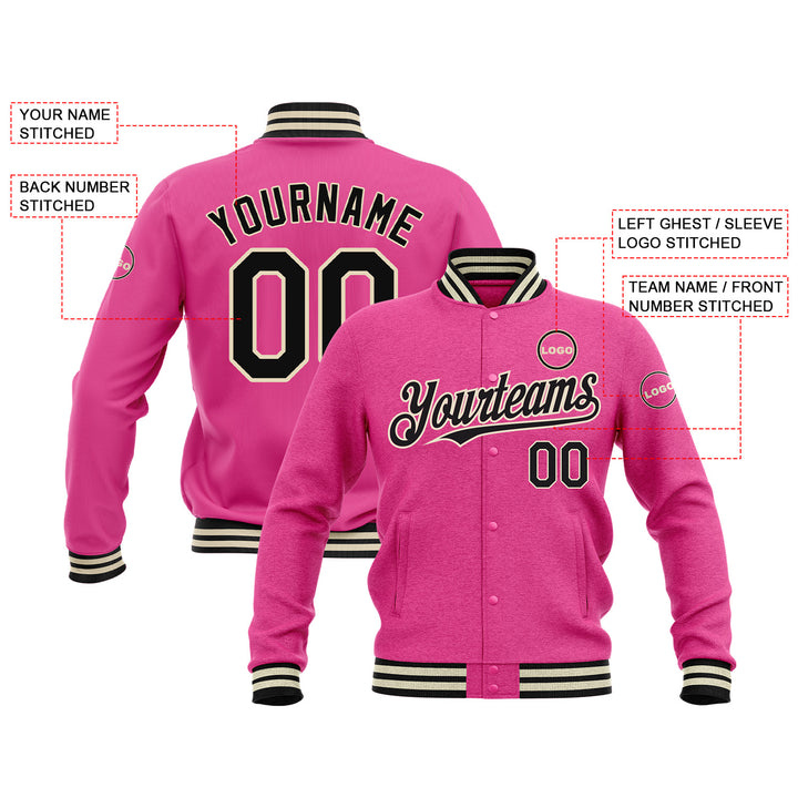 Custom Pink Black-Cream Classic Style Bomber Varsity Letterman Embroidered Jacket