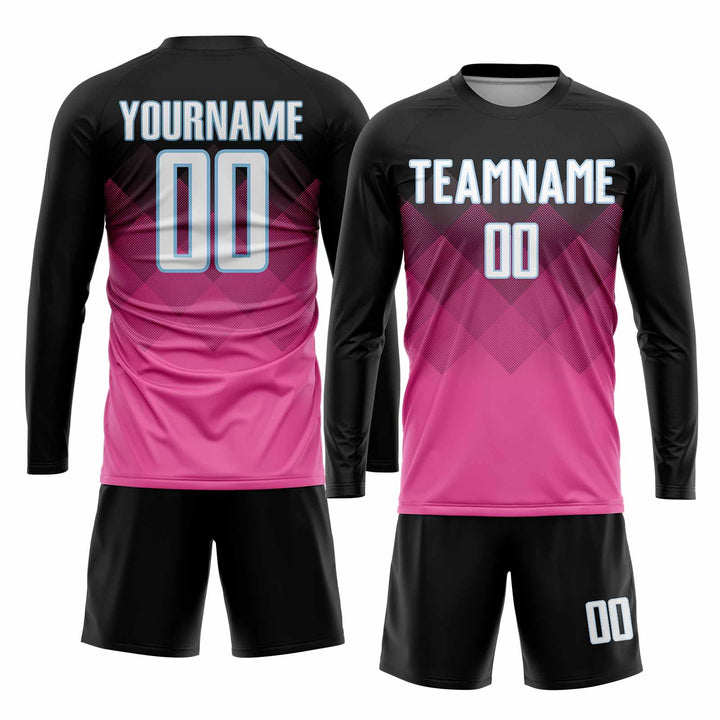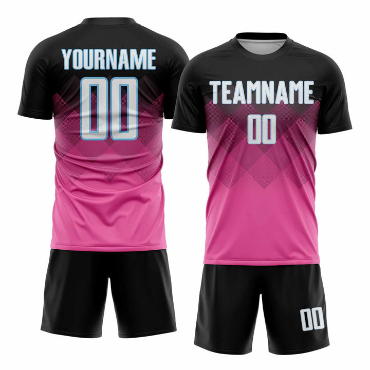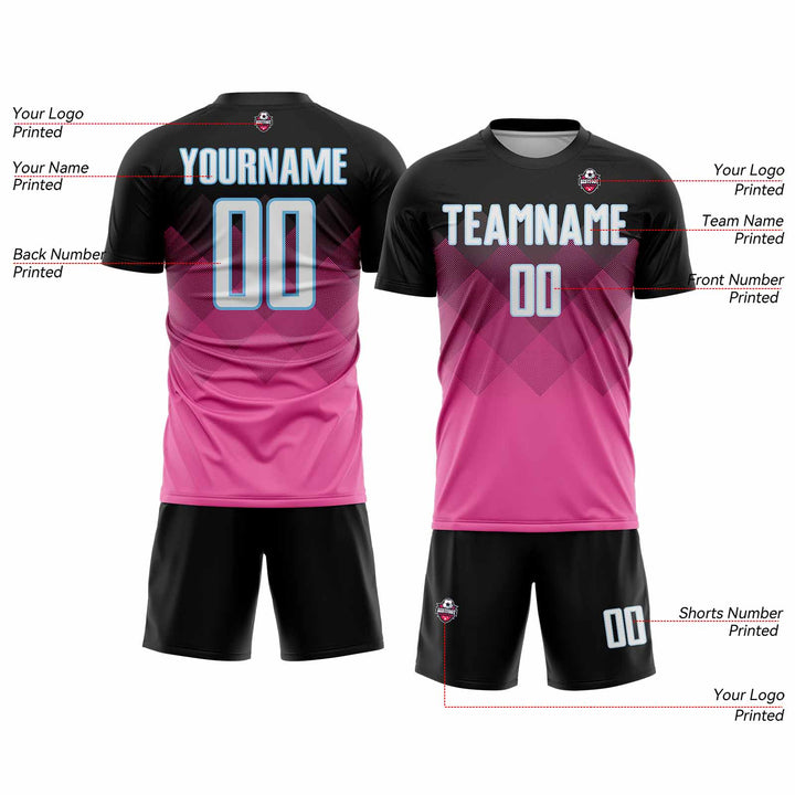 Custom Pink Black-LIght Blue Gradient Square Shape Classic Uniform Training Sets Soccer Jersey For Adults/Kids