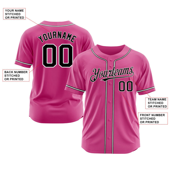 Custom Pink Black-White Classic Style Authentic Sports Baseball Jersey
