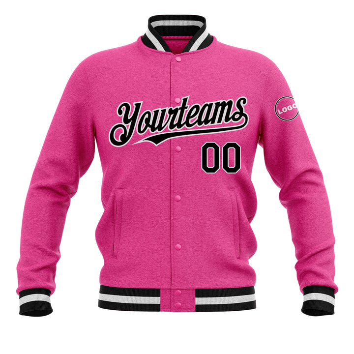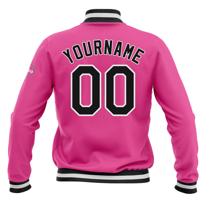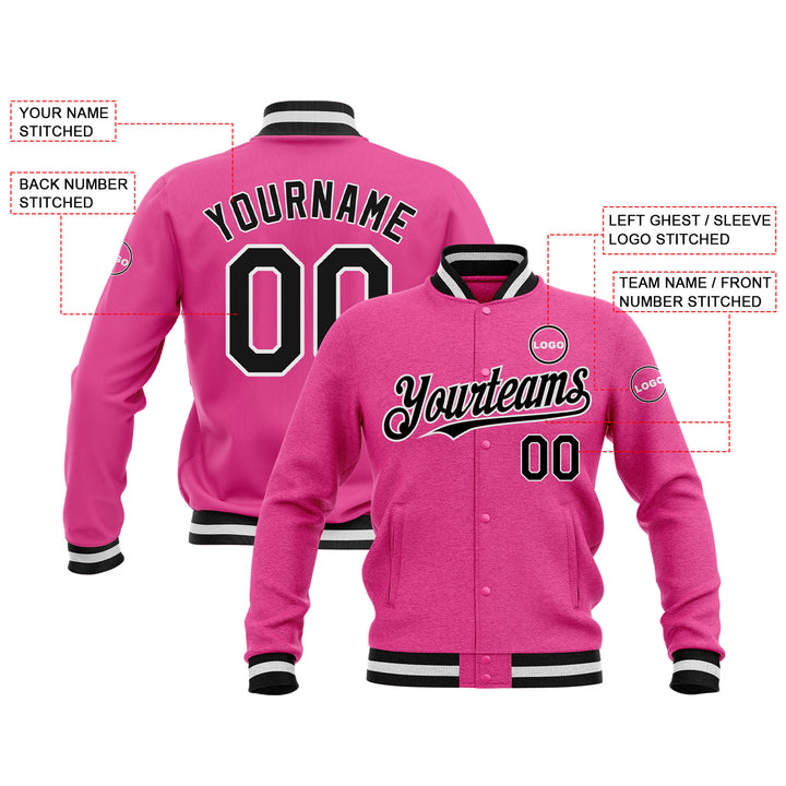 Custom Pink Black-White Classic Style Bomber Varsity Letterman Embroidered Jacket