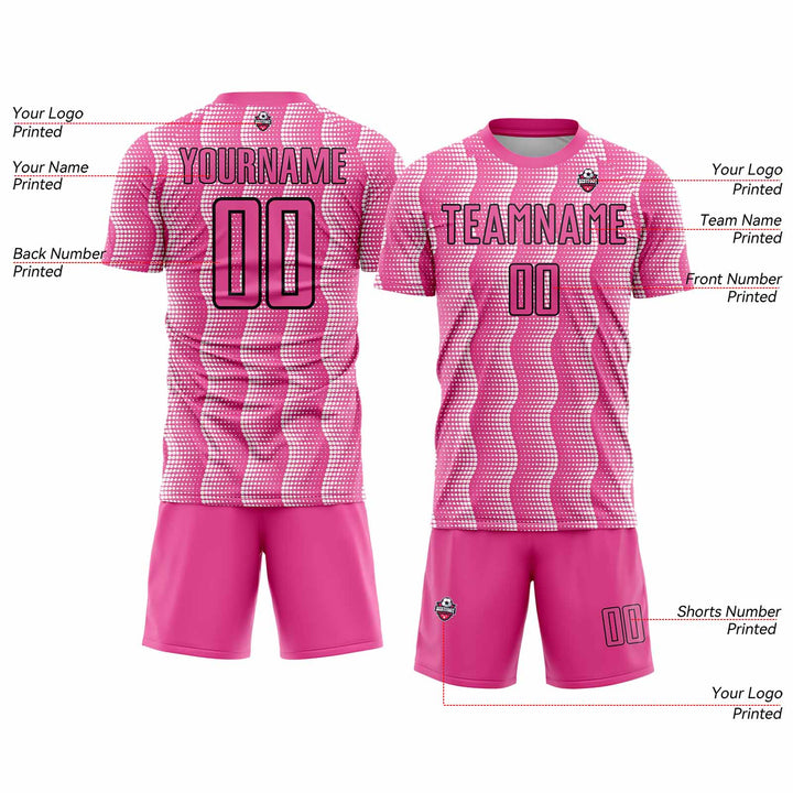 Custom Pink Black-White Geometric Shape Classic Uniform Training Sets Soccer Jersey For Adults/Kids