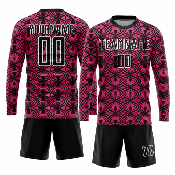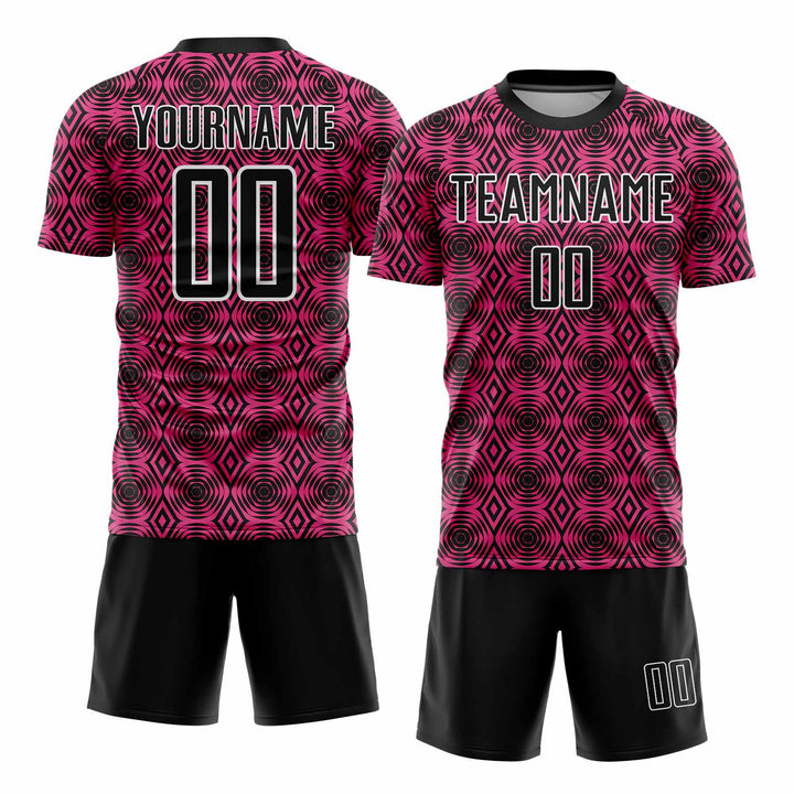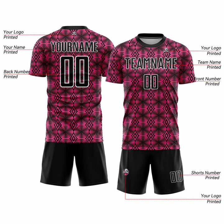 Custom Pink Black-White Geometric Shapes Classic Uniform Training Sets Soccer Jersey For Adults/Kids