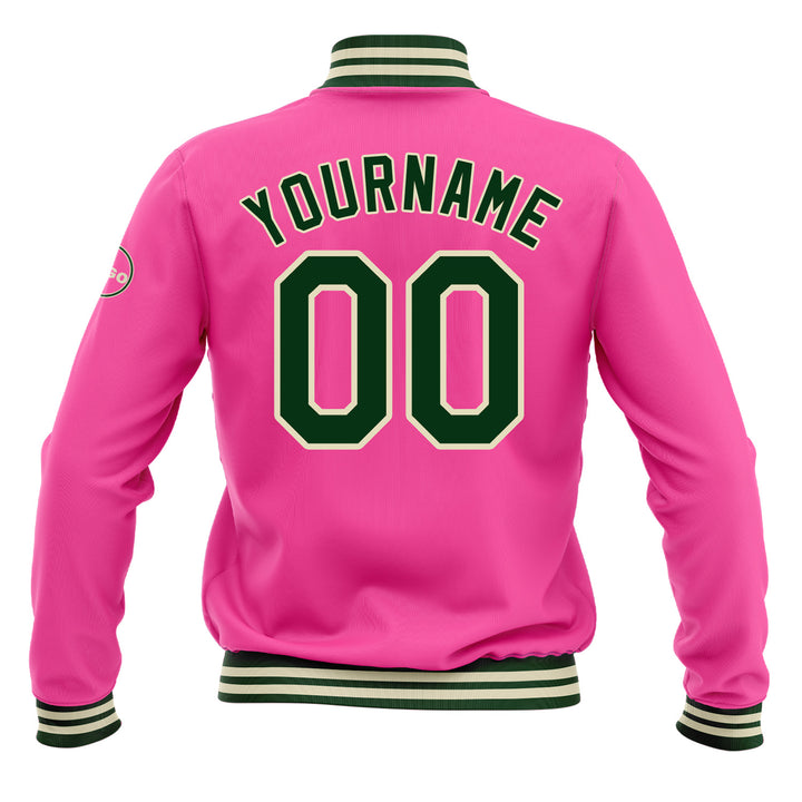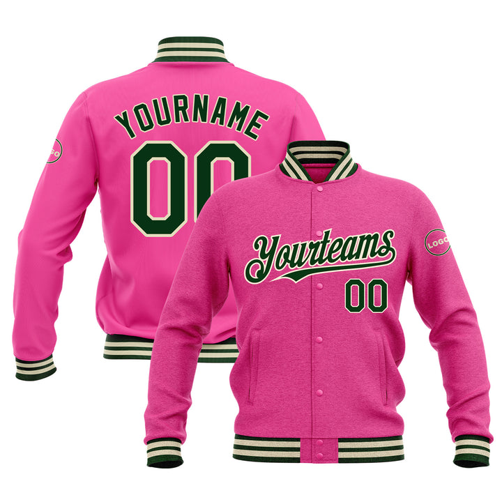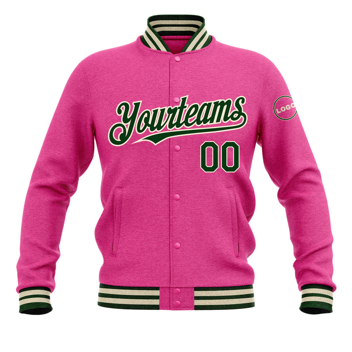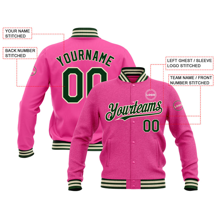 Custom Pink Green-Cream Classic Style Bomber Varsity Letterman Embroidered Jacket