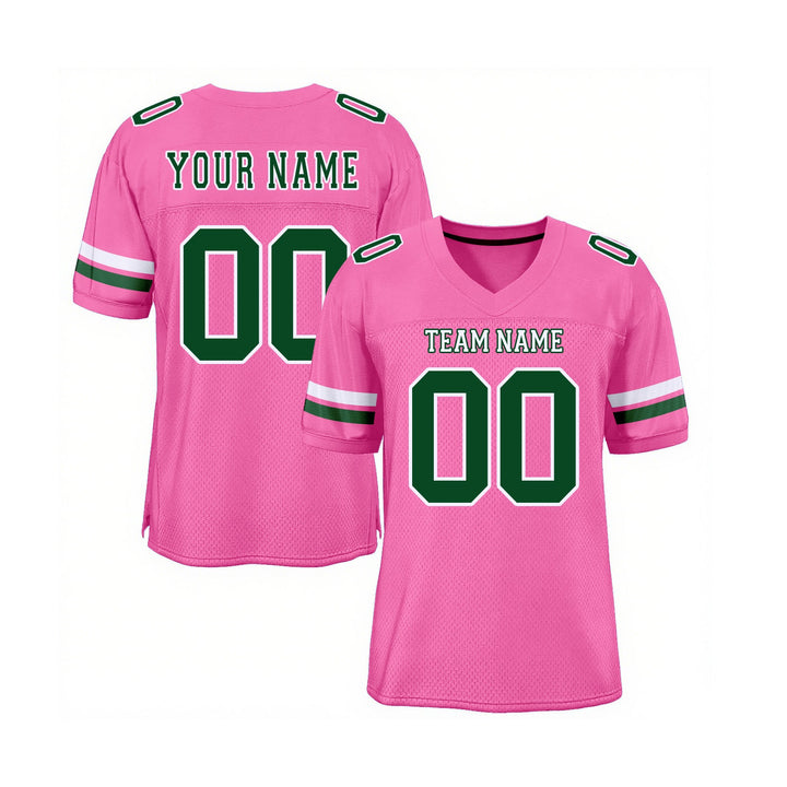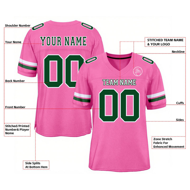 Custom Pink Green-White Mesh Classic Style Authentic Sports Football Jersey