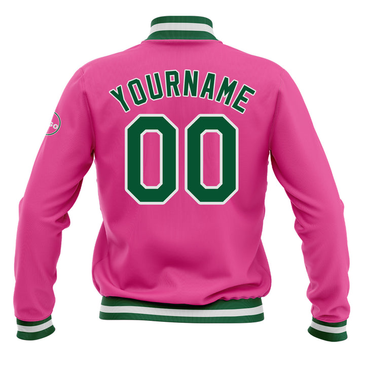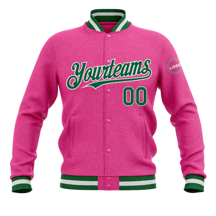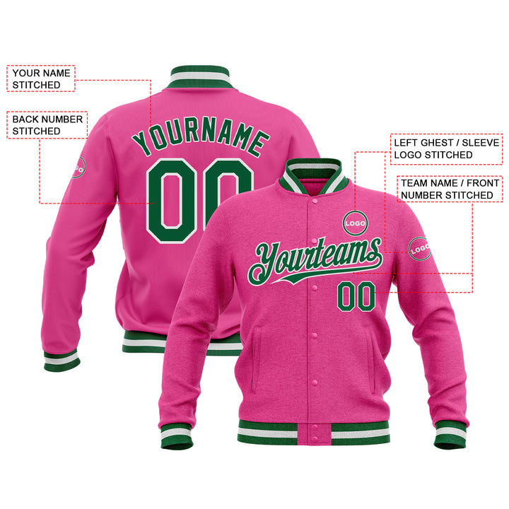 Custom Pink Kelly Green-White Classic Style Bomber Varsity Letterman Embroidered Jacket