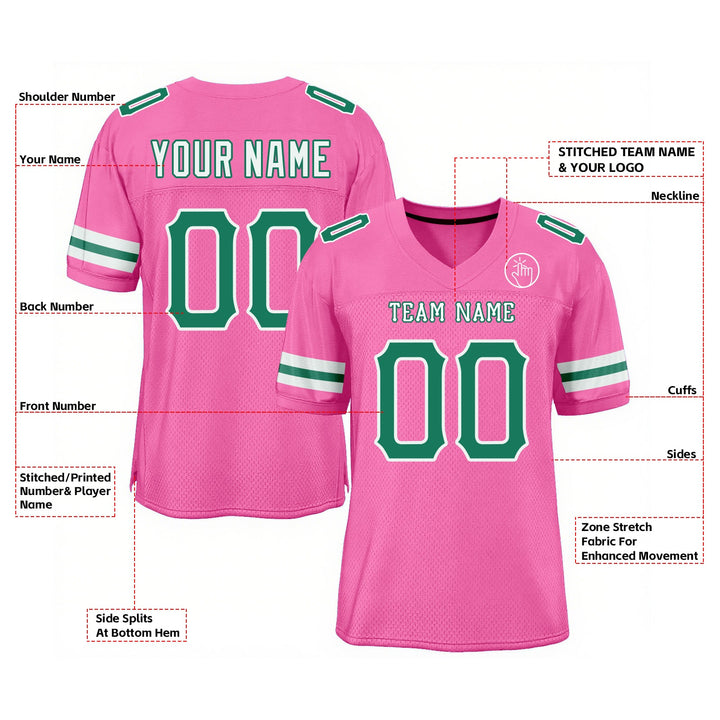 Custom Pink Kelly Green-White Mesh Classic Style Authentic Sports Football Jersey