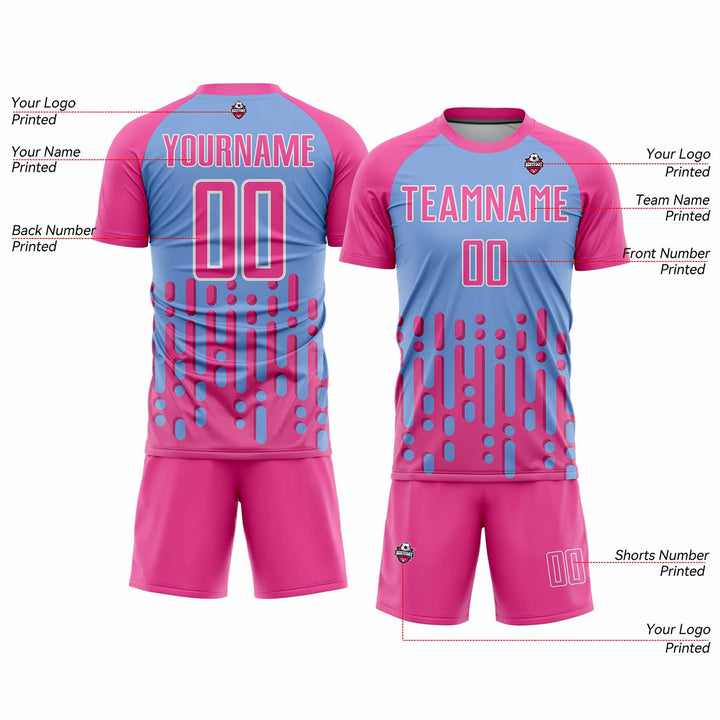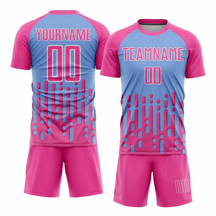 Custom Pink Light Blue-White Abstract Fluid Wave Classic Uniform Training Sets Soccer Jersey For Adults/Kids