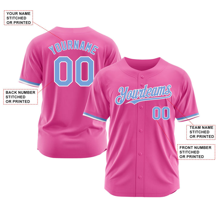 Custom Pink Light Blue-White Classic Style Authentic Sports Baseball Jersey