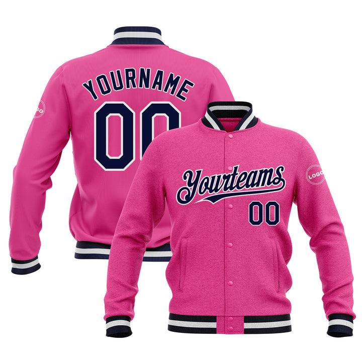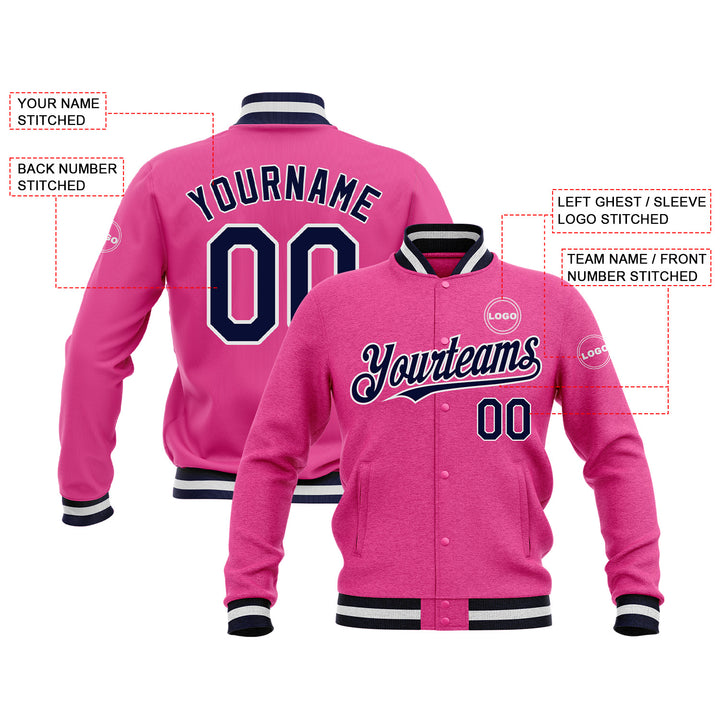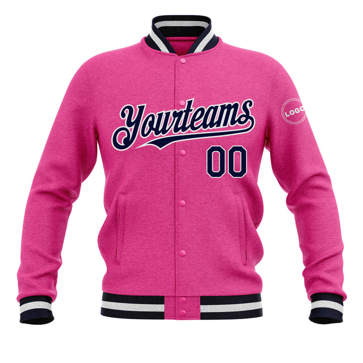 Custom Pink Navy-White Classic Style Bomber Varsity Letterman Embroidered Jacket