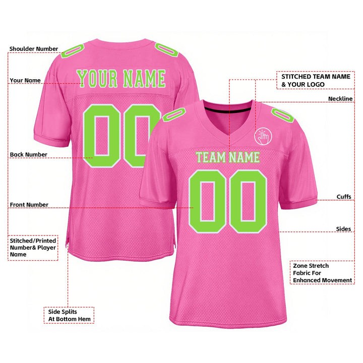 Custom Pink Neon Green-White Mesh Classic Style Authentic Sports Football Jersey