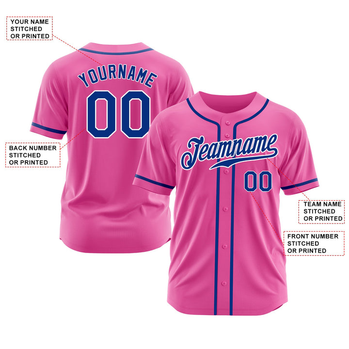 Custom Pink Royal-White Classic Style Authentic Sports Baseball Jersey