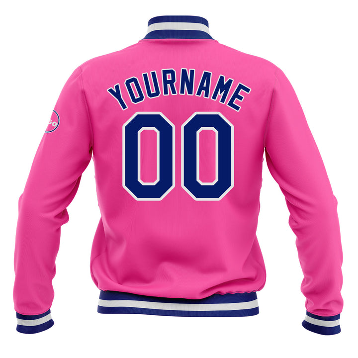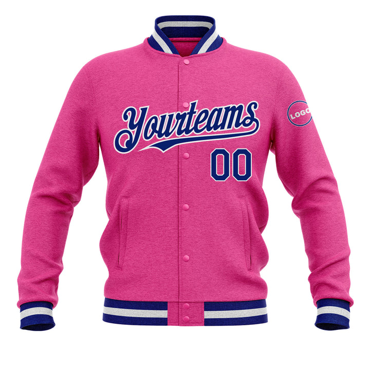 Custom Pink Royal-White Classic Style Bomber Varsity Letterman Embroidered Jacket