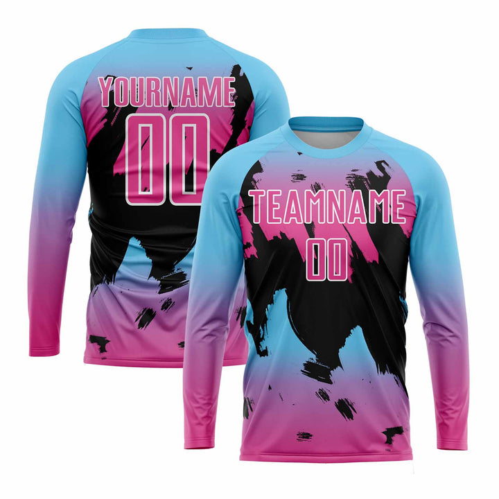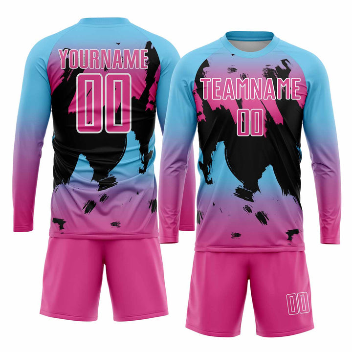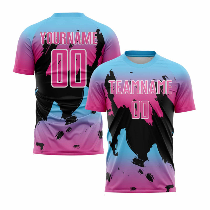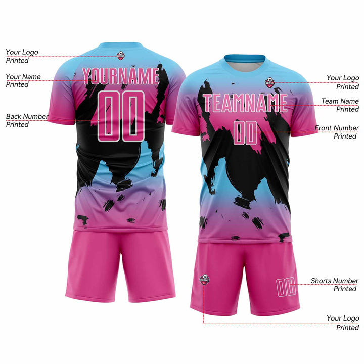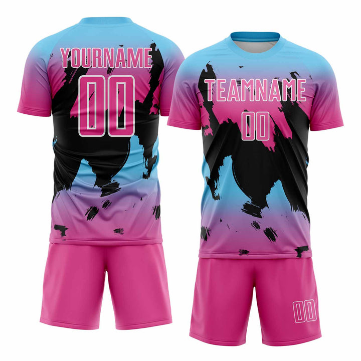 Custom Pink Sky Blue-Black Splash Classic Uniform Training Sets Soccer Jersey For Adults/Kids