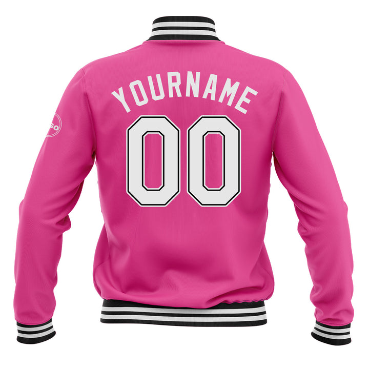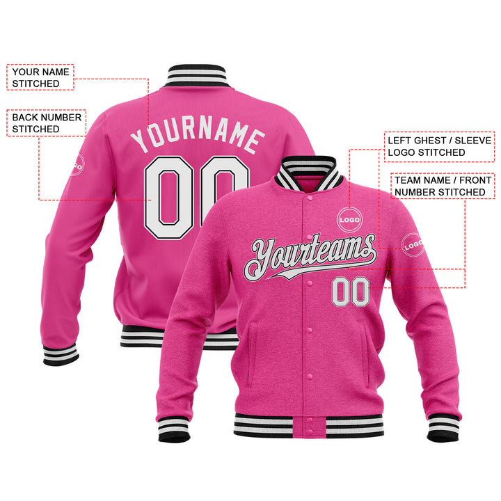Custom Pink White-Black Classic Style Bomber Varsity Letterman Embroidered Jacket