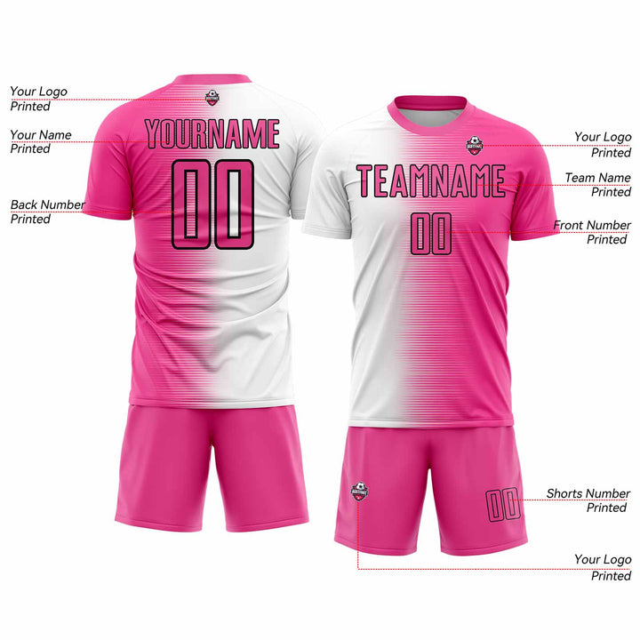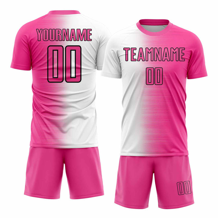 Custom Pink White-Black Gradient Line Classic Uniform Training Sets Soccer Jersey For Adults/Kids
